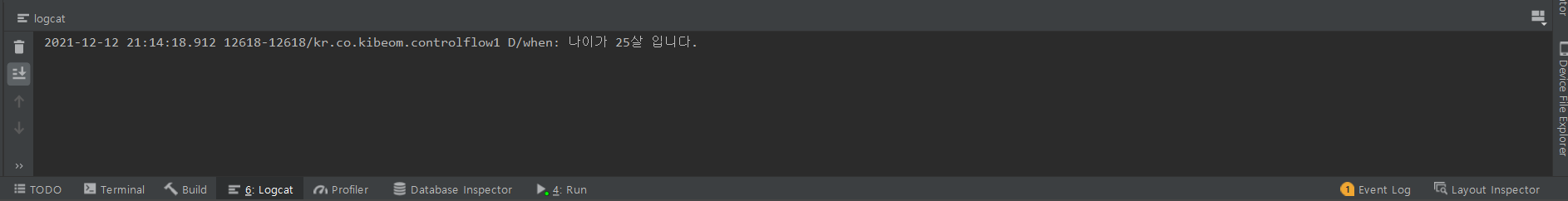 Log.d("when", "당신의 나이는 10대가 아닙니다.")
