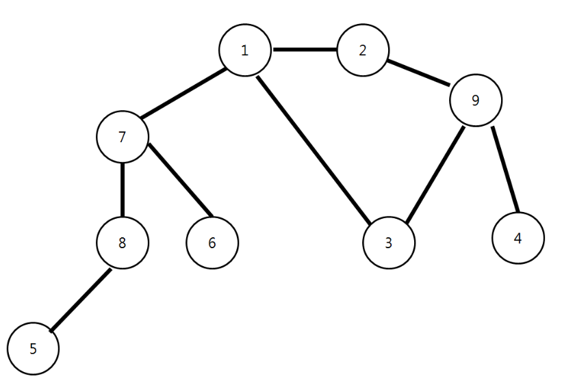 - 선입선출을 기준으로 뽑아낸 3번 노드에서 갈 수 있는 곳은 1, 9 이지만 이미 1, 3 은 방문처리가 되어있다. (탐색: 1, 2, 3, 7, 9) (큐: 7, 9)