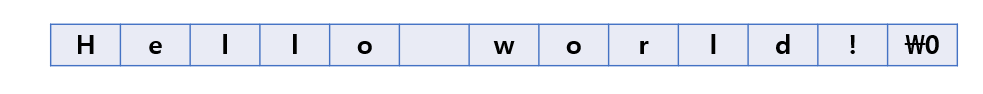 char str[] = "Hello world!"; // 글자는 공백을 포함하여 12개 이다.