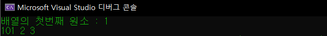 또한 7번 라인을 통해 배열의 첫 번째 원소에 접근하여 100을 더하여 101로 변경이 된 것을 확인할 수 있다.