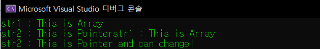 str2 = "This is Pointer and can change!"; // 포인터 형태는 가르키는 대상 변경 가능