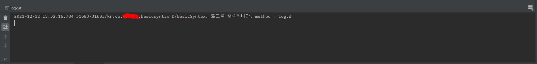 Log.d("BasicSyntax", "로그를 출력합니다. method = Log.d")